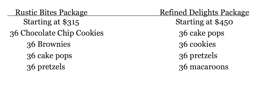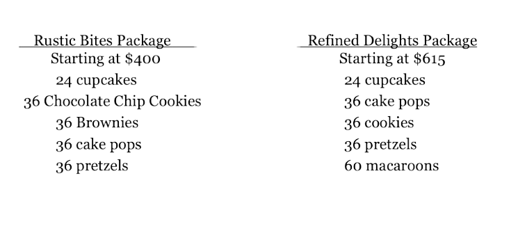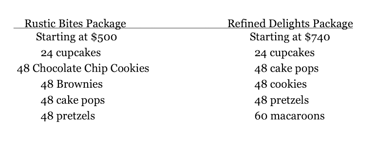 We offer two different dessert table packages in a variety of sizes to best suit your party. Our two different style packages are: